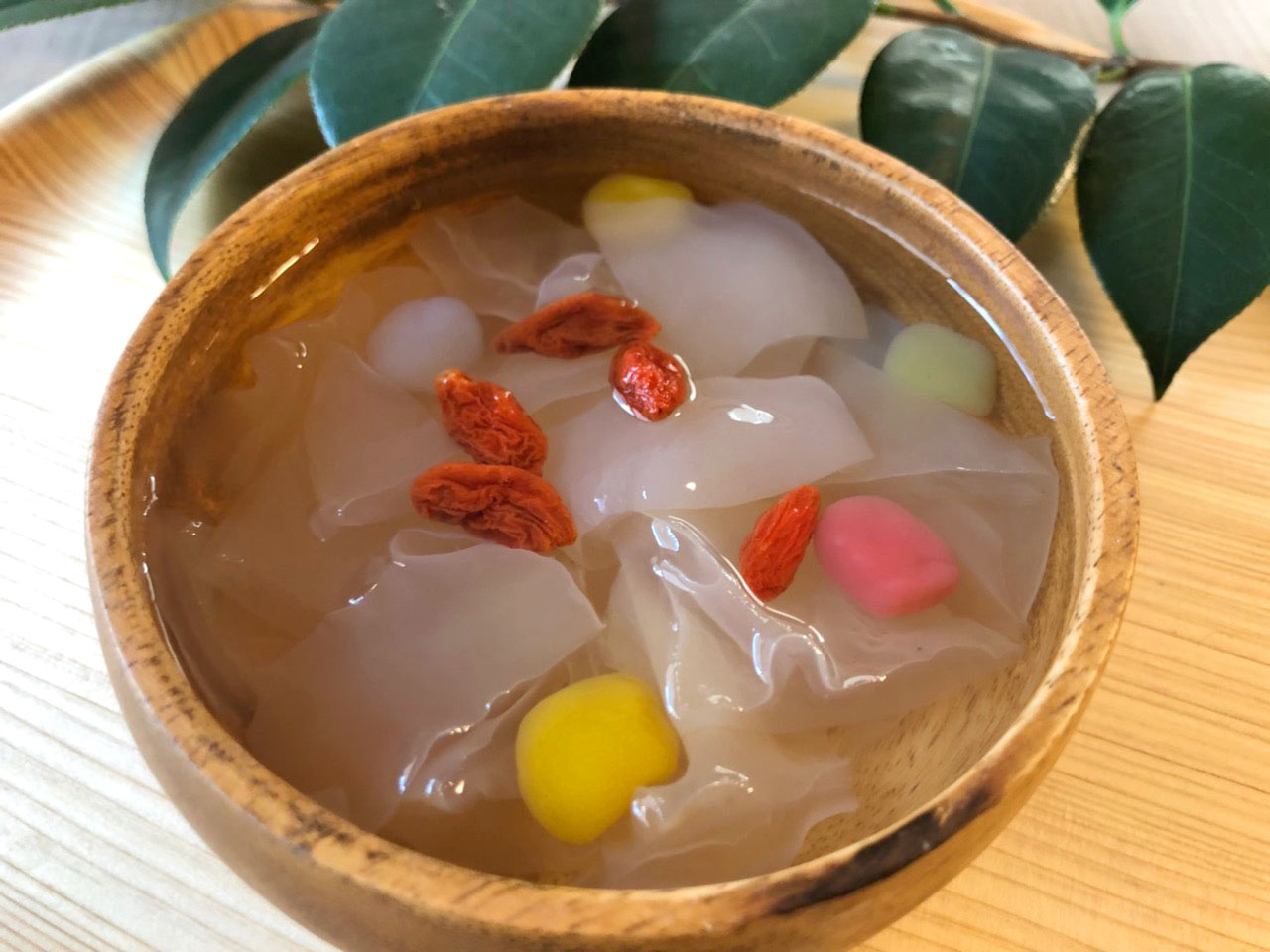 アスカグリーンファームの白いきくらげがたっぷり入り、腸内環境を整えるヘルシータピオカをトッピング‼️